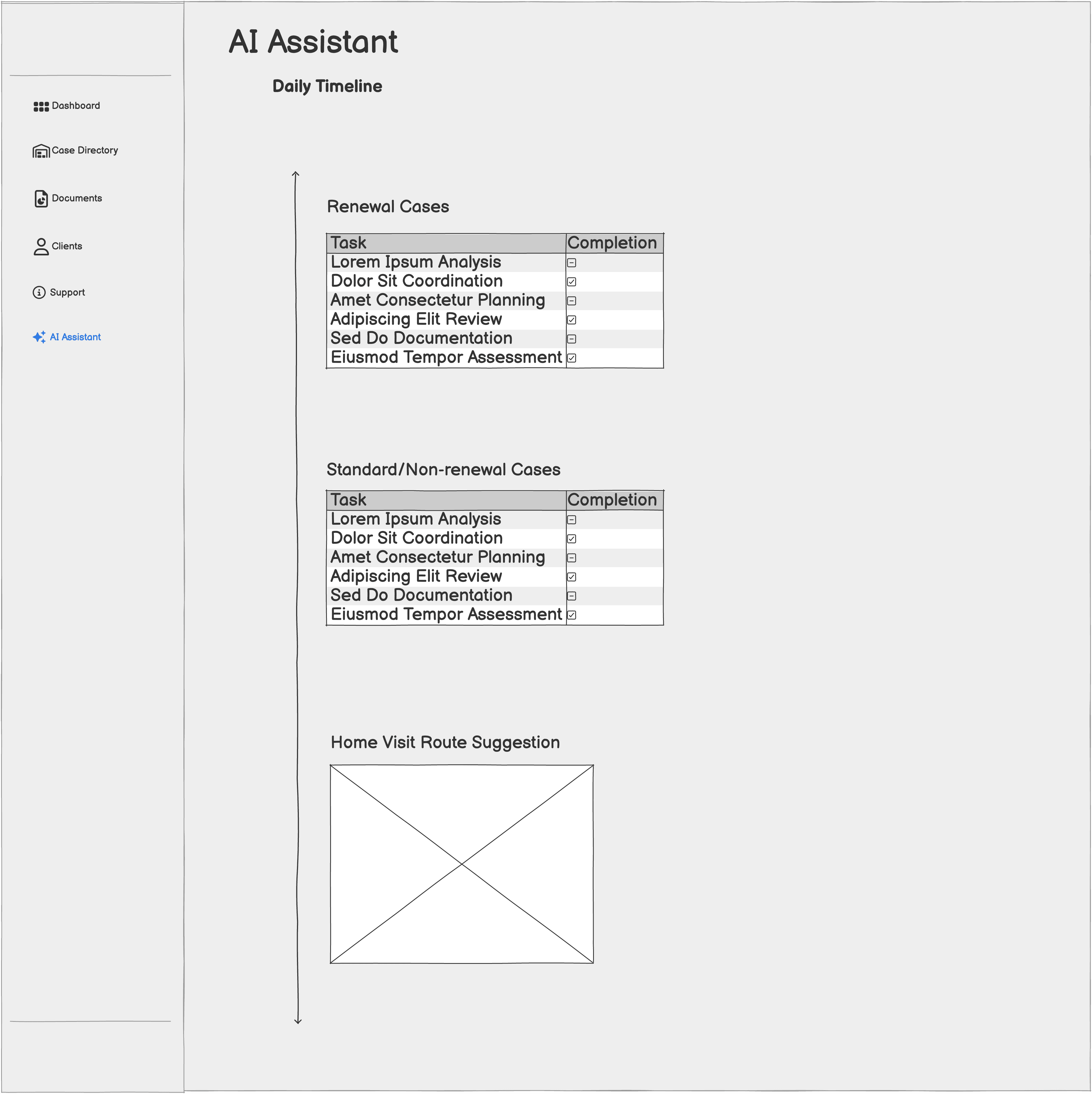 The limitations of this project directly shaped a set of conservative, research-informed design decisions that prioritize clarity, safety, and meaningful human control. Because I didn’t have access to real caseworkers or internal Medicaid systems, I had to continuously ask: What can I design that meaningfully solves the problem statement given the information I do have? That question pushed me toward features whose value holds across states, tools, and workflows. The daily Optimized Timeline emerged from this constraint, it is a simple, universal structure that can sit on top of many possible case-management environments while still being helpful
