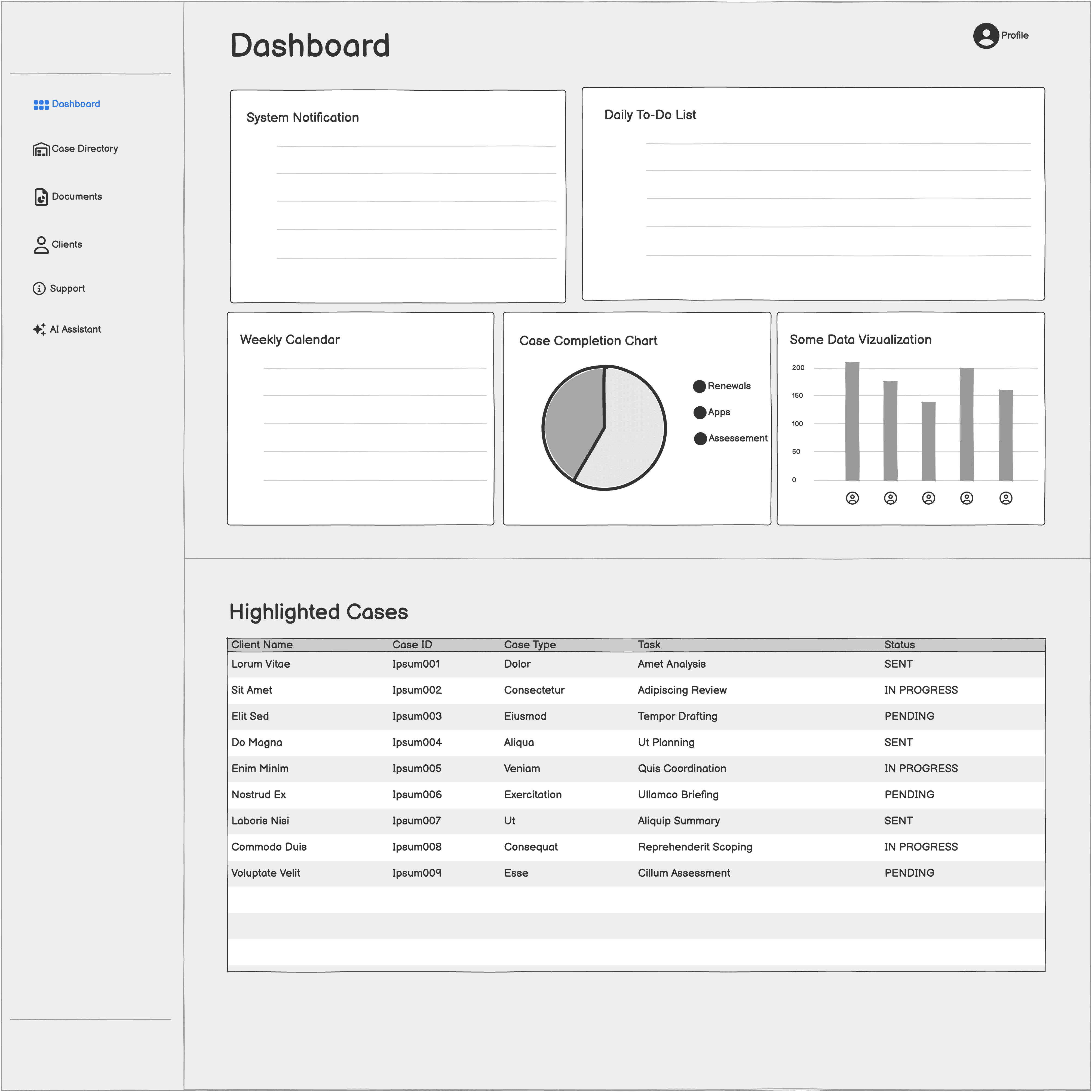 In real life, caseloads can exceed 150–200 clients per worker, making case directories far more extensive than what’s shown in this project. This card provides a sharper, more focused view of that directory by surfacing cases that are at risk of slipping through the cracks, such as those with overdue documents, stalled reviews, expiring benefits, or unresolved supervisor decisions. It essentially gives caseworkers a high-level view that the standard directory doesn't offer initally.